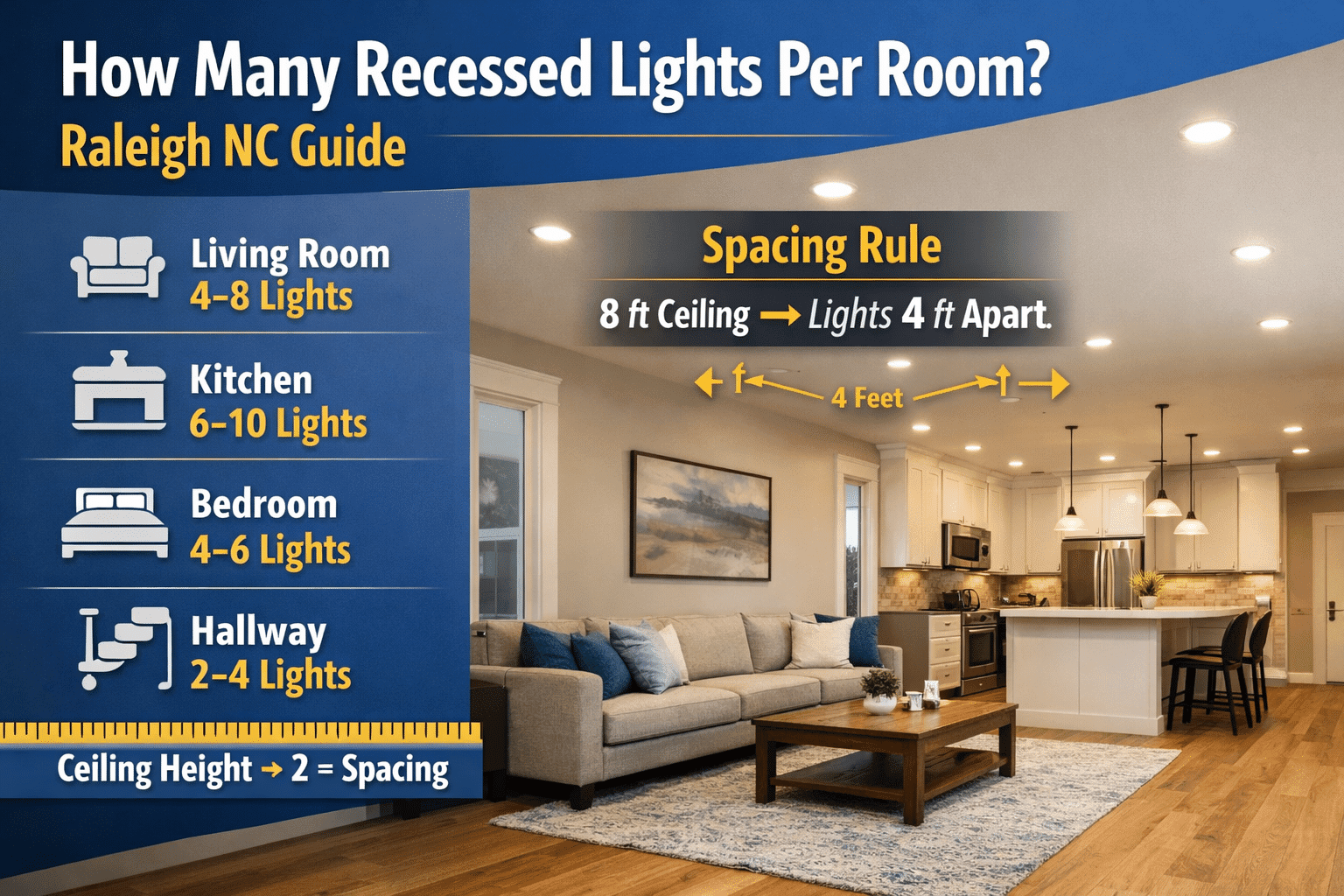 đź’ˇ How Many Recessed Lights Per Room? (Raleigh NC Homeowner Guide)
